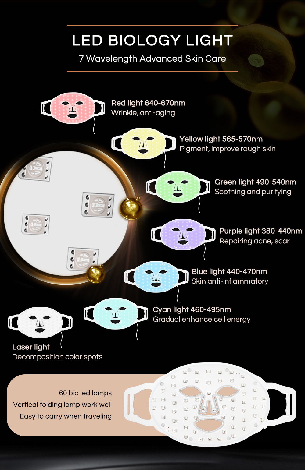 New Bendable Silicone Gene Biology LED Therapy Facial Mask With 7 Light Colors